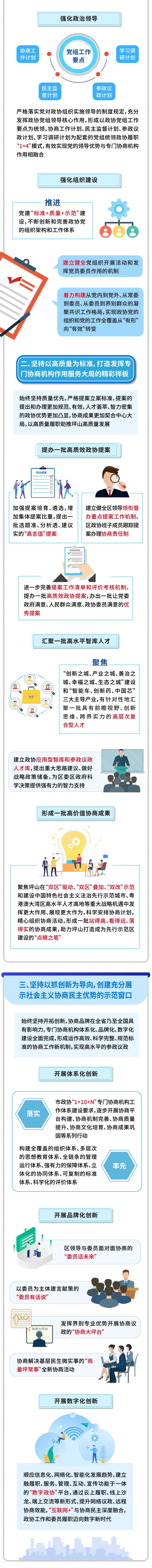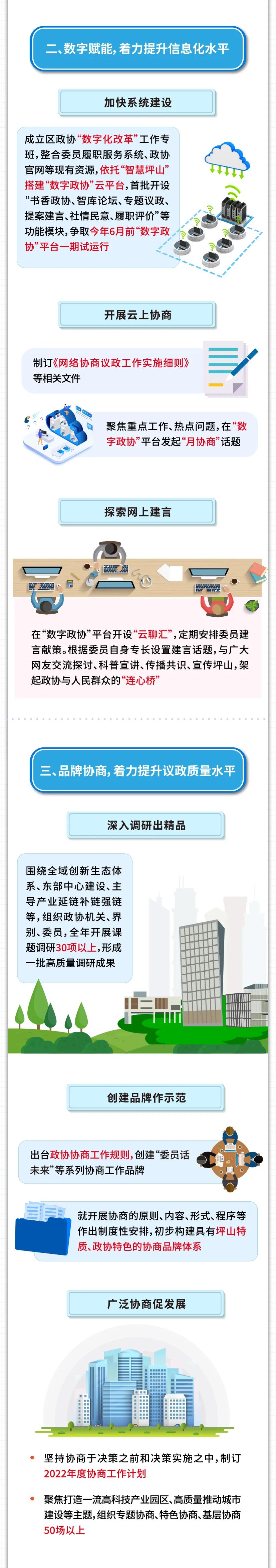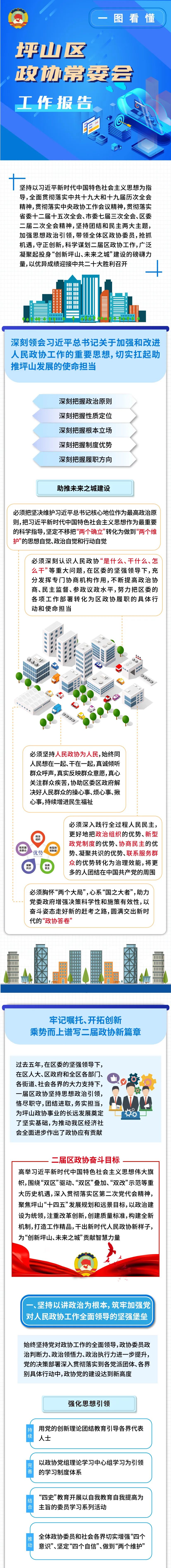 报告提出,二届区政协履职期间,区政协将高举习近平新时代中国特色社会主义思想伟大旗帜,围绕“双区”驱动、“双区”叠加、“双改”示范等重大历史机遇,深入贯彻落实区第二次党代会精神,聚焦坪山“十四五”发展规划和远景目标,以政治建设为统领,注重改革创新,创建质量标准,构建全新机制,打造工作精品,筑牢加强党对人民政协工作全面领导的坚强堡垒,打造发挥专门协商机构作用服务大局的精彩样板,创建充分展示社会主义协商民主优势的示范窗口,搭建广泛汇聚各方力量增进各界共识的桥梁纽带,形成助推治理体系和治理能力现代化的生动实践,争做“懂政协、会协商、善议政,守纪律、讲规矩、重品行”的模范先锋,干出新时代人民政协新样子,为“创新坪山、未来之城”贡献智慧力量。