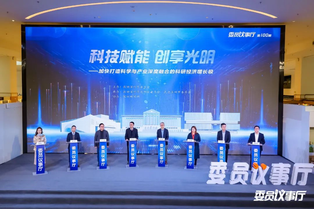 12月21日,深圳中心书城南区大台阶。一场以“科技赋能 创享光明——加快打造科学与产业深度融合的科研经济增长极”为主题的深圳市政协“委员议事厅”在此举行。这是“委员议事厅”的第100场活动。