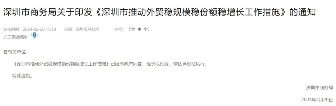深圳发布“稳外贸24条”,加快建设贸易强市