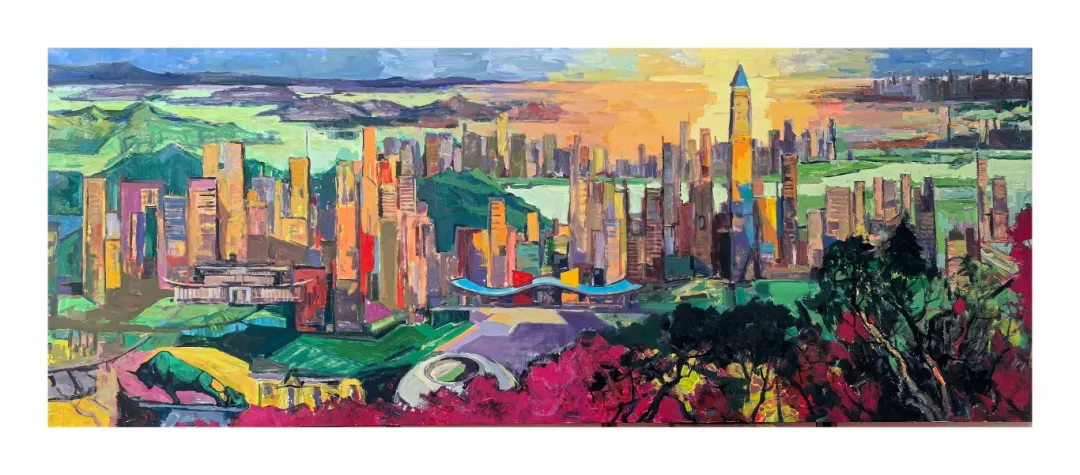 据了解,2014年以来,市政协每年举办迎新春书画笔会,以深圳书画家共创生肖大画形式,表达对新年的美好祝愿。随着十二生肖大画系列完成创作,今年,市政协迎新春书画笔会有了新的主题——“画深圳 画未来”。从今年开始的12年里,市政协将以“都市+山水+文化”为主线,沿着深圳11个区(含大鹏新区、深汕特别合作区)的脉络,逐年以各区城景为创作主题,最终在第12年绘就深圳全域全景大作。这一主题的创作之旅从福田区开启,《首善之区 七彩福田》是这一“11+1”系列创作的开篇之作。同时,今年市政协书画笔会的年度大画采用创新的丙烯画种,用更加鲜艳饱满的色彩,定格城市地标之美、历史风貌之韵、公园景观之秀,记录深圳的卓越发展,传递特区发展的伟大成就。