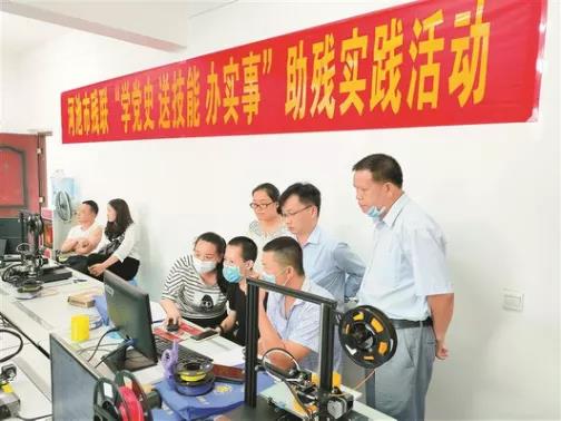 张莹莹带领着残障者在广西河池开展3D打印建模与技能培训。