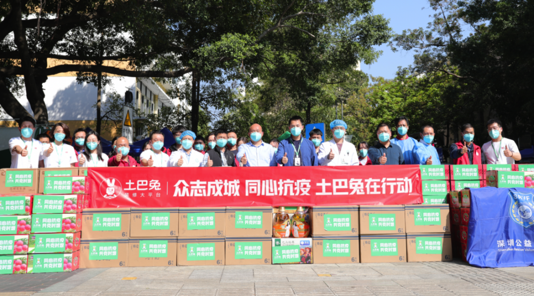 随着满载着爱心物资的车辆开到了抗疫第一线,土巴兔员工与深圳公益救援队的志愿者共同把物资搬下车,随后将把爱心传递到抗疫工作人员手里。