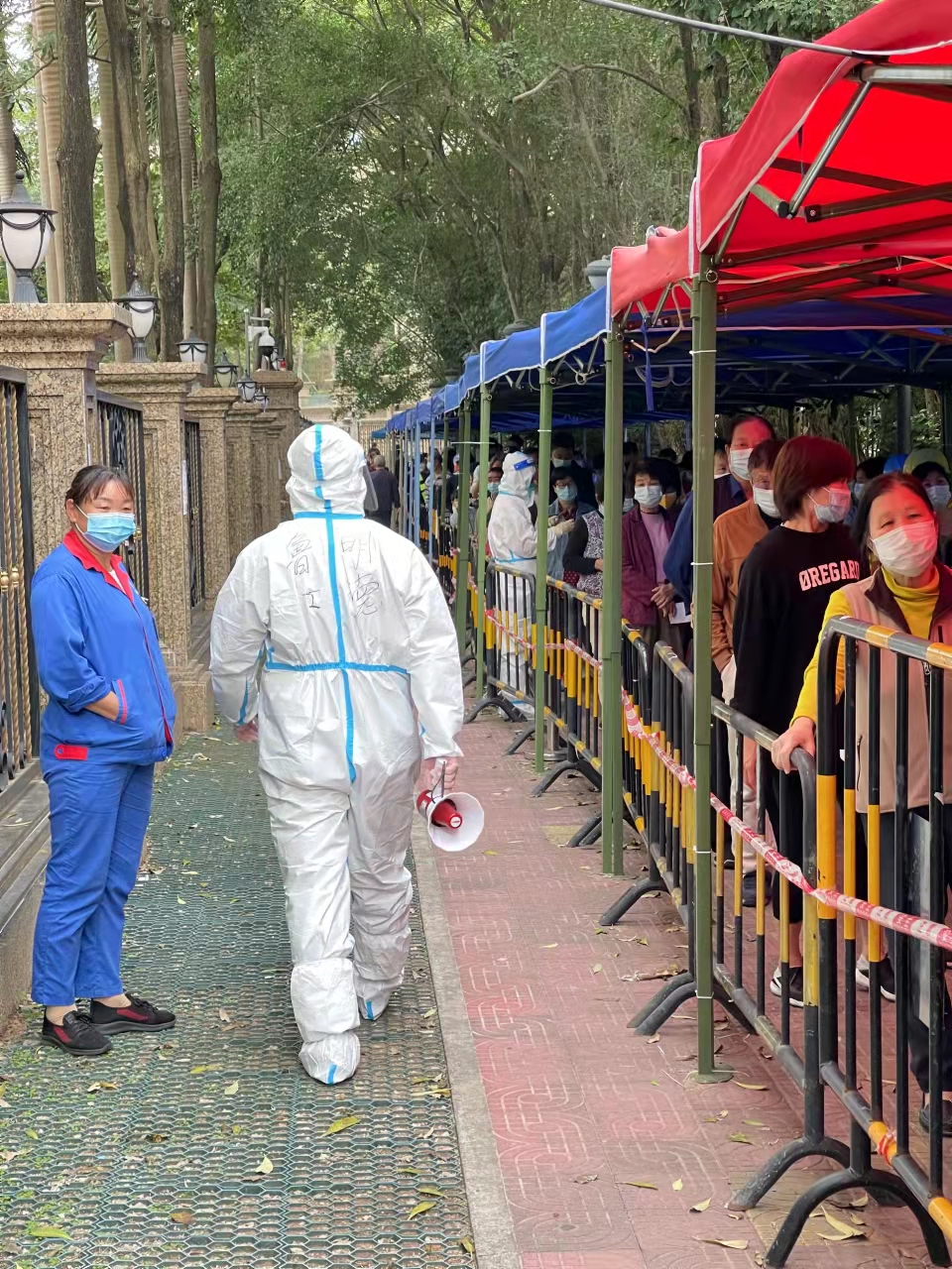 深圳疫情牵动着广大市民的心,为助力抗疫,汪娱委员积极部署,第一时间与东海社区联系,迅速组织教师成立抗疫突击队,出色完成了东海社区核酸检测和流调工作。汪娱委员更是发挥党员带头模范作用,每有时间就奔赴抗疫一线,下沉到重点区域支援疫情防控工作,维持现场秩序,疏导人流,指导群众正确扫码采样,帮助老弱病残孕等有困难的群众,用行动践行使命担当。她幽默地说道:“每次志愿四五个小时,有关疫情防控的几个码是非常熟练了”。