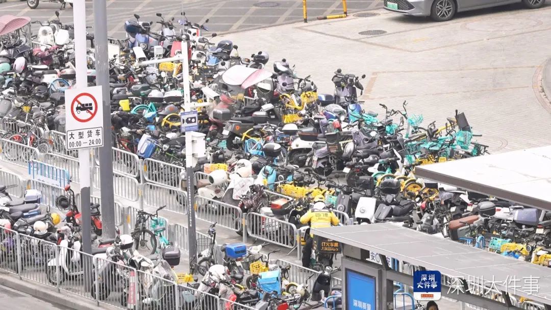 宝安区某地铁口停满了电动自行车。