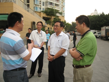陈思平副主席首先到桃源街道办事处,与市住房和建设局、市信访办、桃源街道工委等有关单位的负责人座谈,听取有关2009年2月份以来桃源村三期信访问题处理的情况汇报。随后,陈思平副主席来到到桃源村三期现场,了解对有关房子质量问题进行维修、补偿的情况。