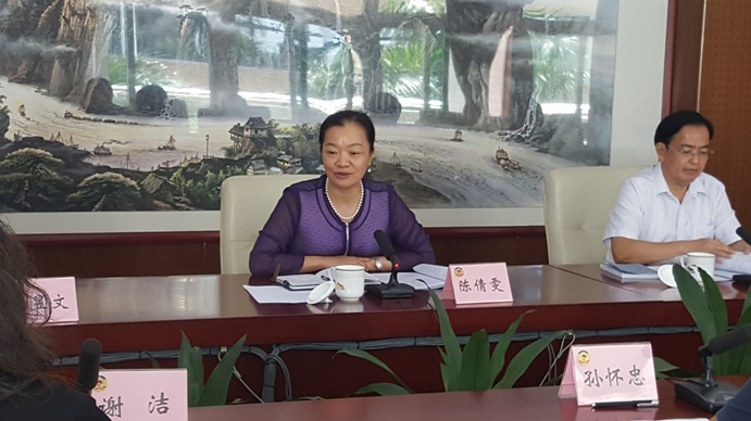 为更好地落实重点提案督办工作,2016年9月14日上午在市政协后四楼会议室,市政协副主席陈倩雯召集提案主办单位和提案人,召开重点提案督办会议,听取有关提案办理情况汇报。会议由市政协港澳台侨和外事委员会主任潘家栋主持。