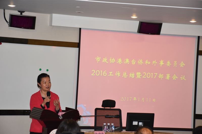 2017年1月11日下午,港澳台侨和外事委召开全体委员会议。市政协常委、港澳台侨和外事委主任潘家栋向委员们通报委员会2016年工作情况,并部署了2017年重点工作。潘家栋主任指出,2016年专委会组织港澳委员聚焦港澳青少年问题,开展“港澳青少年爱国爱港爱澳现状”调研,提出了具体工作建议;维系好爱国资源,加强了团结联谊;重视界别工作,发挥好界别作用;做好为委员服务保障工作,此外在涉外涉台工作方面也取得了一定进展。2017年主要做好以下工作:开展深港澳旅游合作重点调研课题;开展“搭建深港澳青年交流平台”专题协商;围绕香港回归20周年做好深港澳青少年交流活动;做好外事侨务及对台工作;抓好委员队伍及自身建设。