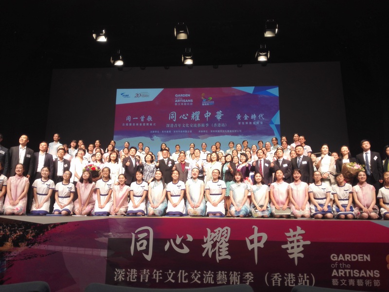 “同心耀中华”深港青年文化交流艺术季香港开幕式5月13日晚在香港青年广场Y综艺馆拉开序幕。市政协徐友军副主席出席了当晚开幕式活动。香港拔萃女书院合唱团和深圳高级中学百合合唱团再次登场,现场献唱多首经典曲目。活动结尾,两地合唱团手拉手登台共唱《东方之珠》,将现场气氛推向高潮。市政协港澳台侨和外事委员会主任潘家栋、团市委书记刘广阳、市港澳办副主任姜力琨、市政协港澳台侨和外事委员会兼职副主任、香港委员召集人李沛良等出席了活动。