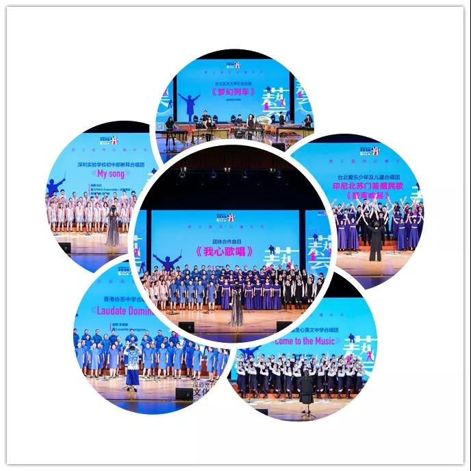 深圳实验学校初中部晰耳合唱团、香港协恩中学合唱团、澳门嘉诺撒圣心英文中学合唱团、台北爱乐少年及儿童合唱团、台北艺术大学打击乐团等五个在国际国内多次获奖的青年演出团体分别呈现了精彩的视听盛宴。