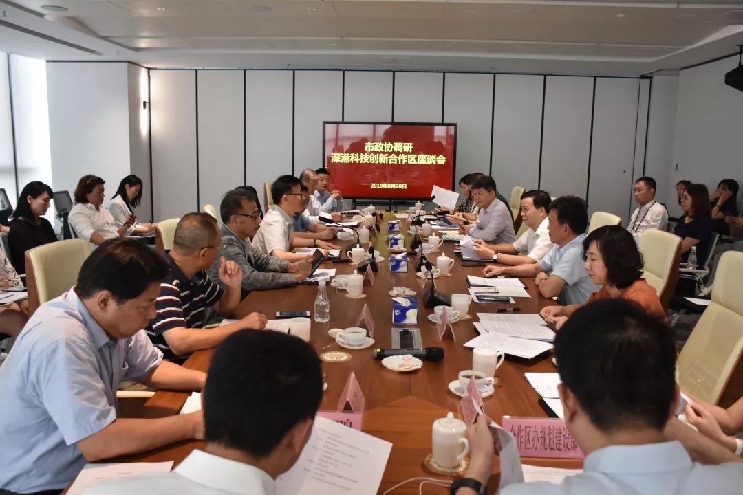 为做好2019年市委市政府重大调研课题“深化深港合作,不断增强深圳在粤港澳大湾区建设中的核心引擎功能研究”调研工作,落实市政协领导在福田区社情民意(2019年第1期)上的批示精神,8月28日下午,市政协党组成员、副主席徐友军带领港澳台侨和外事委相关委员赴深港科技创新特别合作区(以下简称“合作区”)调研。市科技创新委副主任邓晓俊,福田区委副书记黄晓鹏、区政协党组副书记余惠强、区政协副主席朱东波,市发改委、市财政局有关部门负责同志参加调研活动。