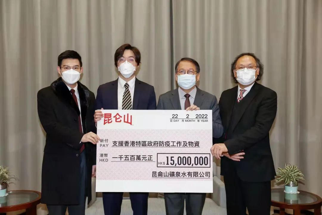 深圳市政协委员、昆仑山矿泉水有限公司副总裁谭镇国携其在任企业积极响应中央政府号召,拨捐合共3,000万港币以支持全城防疫抗疫工作,并代表公司出席支票捐赠仪式。其中,捐款的一半金额将交由香港特区政府进行调配,以支持相应机构防疫工作及物资;其他则分别交由全港小区抗疫联机和香港义工联盟,以支持小区抗疫工作。捐赠仪式上,香港特首办主任陈国基、全港小区抗疫联机总召集人陈振彬、香港义工联盟常务副主席邓清河代表接收善款,共同传递与全港市民携手同心、打赢抗疫战的必胜信念。