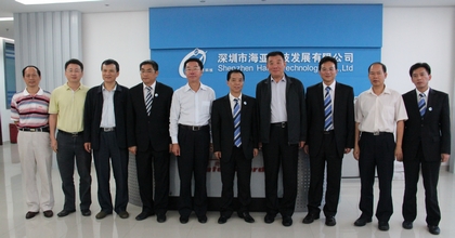 市政协委员张少华、市海亚科技发展有限公司总经理谌志华,陪同王学为副主席参观公司的产品情况。
