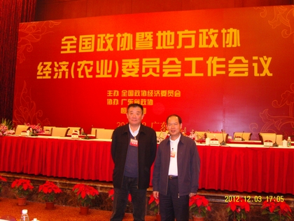 2012年12月3日至12月7日,全国政协暨地方政协经济(农业)委员会在广东清远市召开。