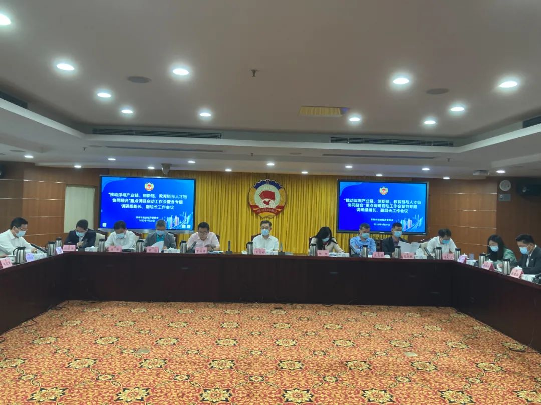 4月28日,深圳市政协经济委召开“推动深圳产业链、创新链、教育链与人才链协同融合”重点调研启动工作会暨各专题调研组组长、副组长工作会议。两百余名市政协委员将重点围绕深圳四链协同融合现状、问题,以集成电路、人工智能、生物医药、医疗器械、数字时尚、海洋产业、绿色低碳和新材料等八大产业为切入点展开调研,并形成“1+4+8+N”份调研成果,即“一个总报告、四个分报告、八个子报告、若干份调研材料”,提出“四链融合”发展的对策建议,为市委市政府决策提供参考。市政协副主席王宏彬参加启动会。