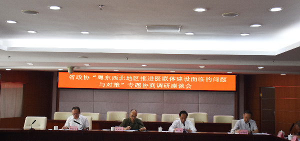 省政协领导介绍调研情况会议由市政协科教卫体委专职副主任朱惠星主持。省政协调研组组长,省政协常委、科教卫体委员会主任郭俊简要介绍本次调研的背景,市卫生计生委重点介绍我市医联体建设的基本情况,罗湖区、盐田区、龙华区、光明新区分别介绍各区推进医疗集团建设的主要做法、工作成效、存在的问题以及下一步工作重点。省政协调研组14位委员分别发言,就如何结合粤东西北地区不同的经济发展情况开展分类指导、加快全省医疗信息化建设、理清学习罗湖模式的出发点和落脚点等问题进行交流;并从健全医联体建设可持续发展,把握好政策的紧、松、管、放,从下位思维出发,建立新机制、新动力,做好医联体建设的共享共惠等方面提出了建议。