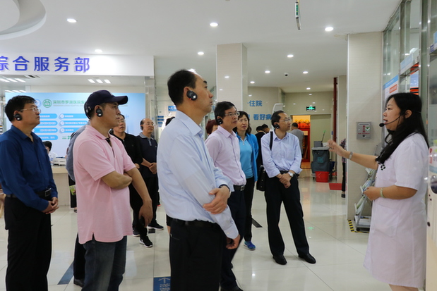 10月17日上午,调研组前往罗湖区人民医院调研,先后参观了医院门诊楼、住院部、医技楼。在医技楼影像中心,该科室主任向调研组现场展示了院际间远程会诊情况。参观结束后,调研组一行与罗湖区卫计局、罗湖医院集团进行座谈交流。罗湖区卫计局副局长黄辉鹏介绍了罗湖建立的“让居民少生病、少住院、少负担、看好病”的医疗卫生服务新模式,重点介绍了医保支付方式改革、建立现代医院管理制度、下沉优质医疗卫生资源,做强做实社康中心等具体举措。双方就如何壮大人才队伍、优化资源配置等问题进行交流。