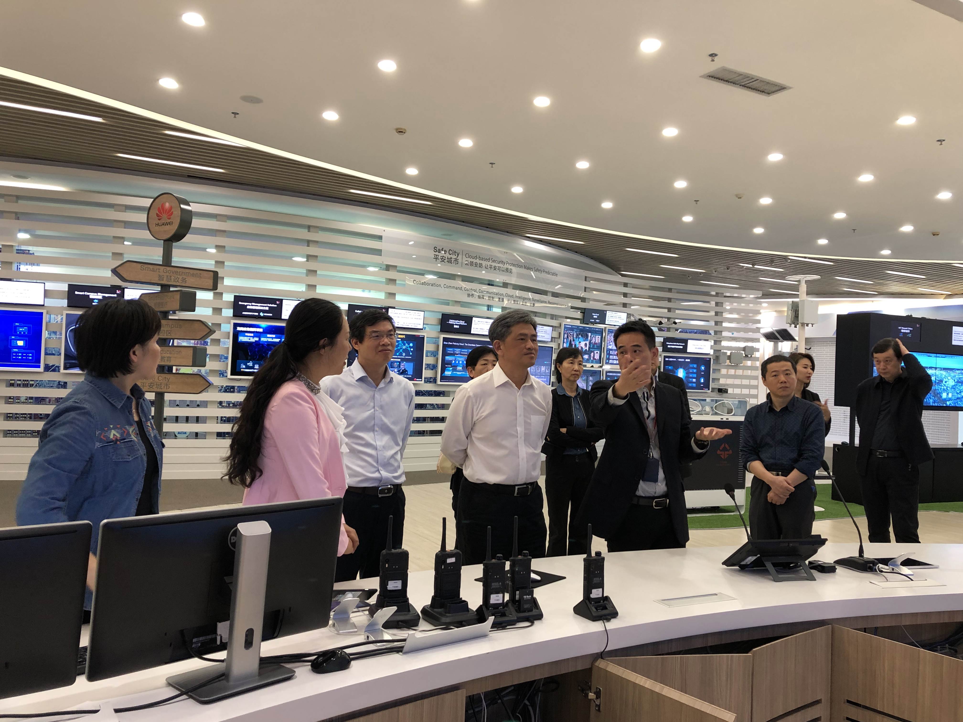 4月8日下午,调研组一行前往华为总部基地调研。参观了华为5G展厅,了解了华为在打造“智慧政务”“智慧医疗”“智慧园区”“智慧教育”“平安城市”等领域的技术探索和创新成果。