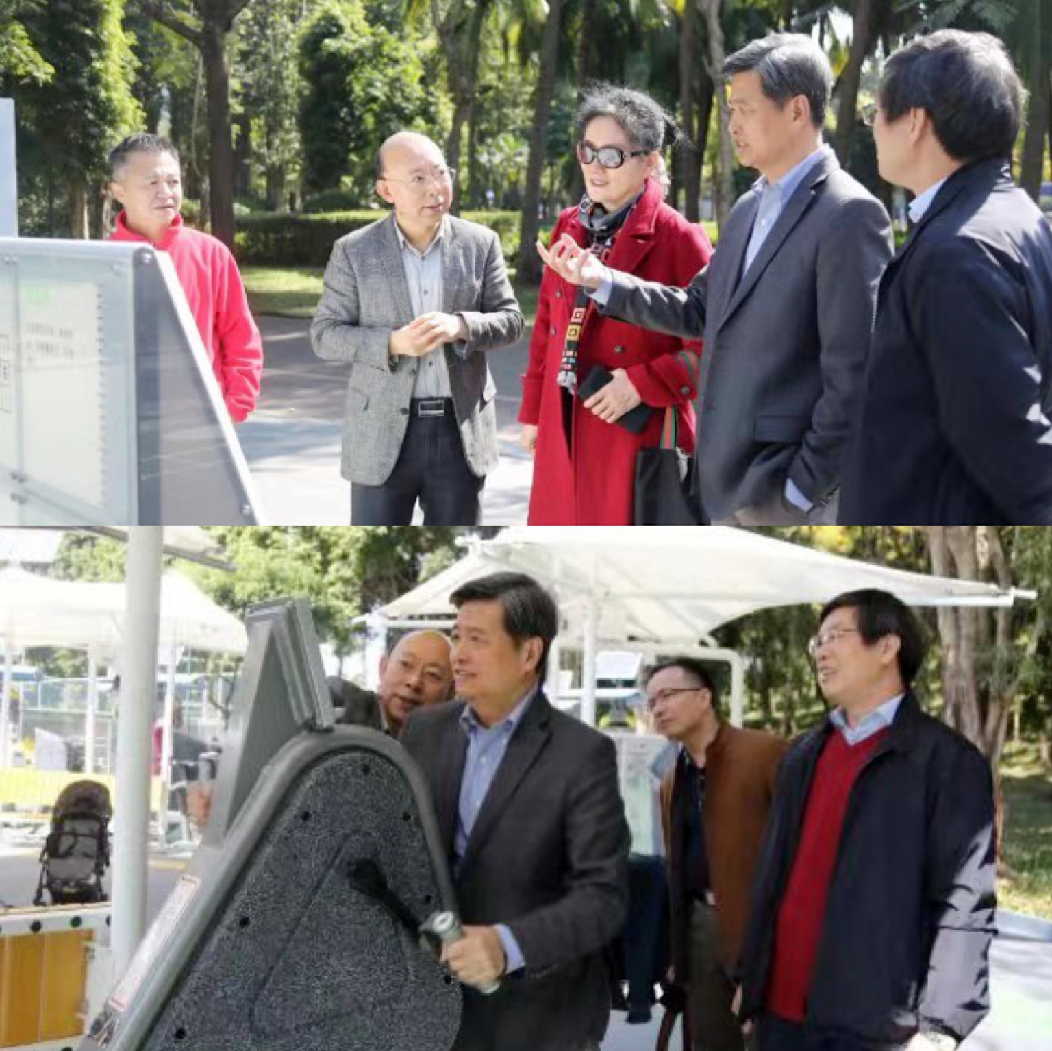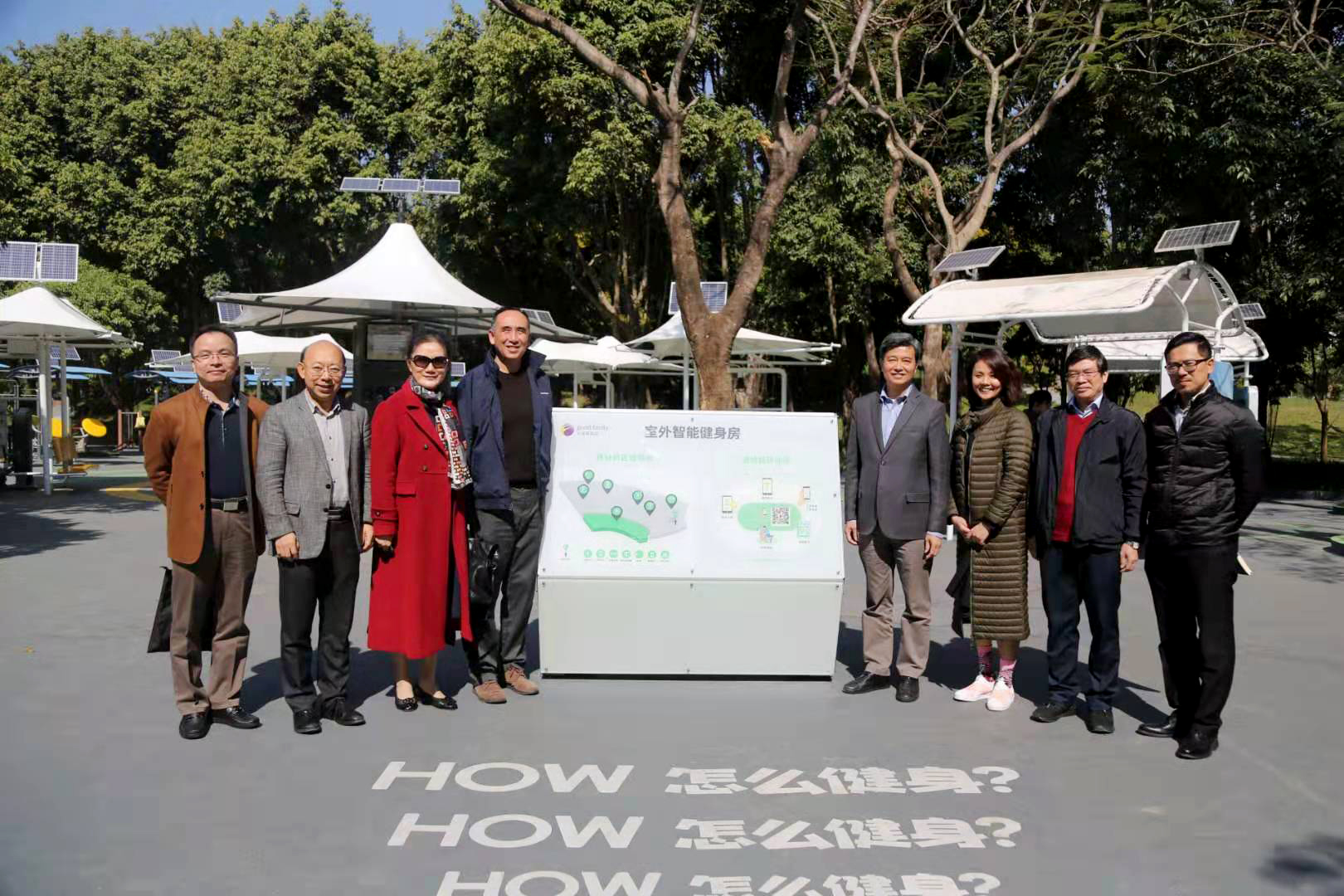 会后,体育界别委员前往中心公园考察户外智能健身房公益项目。
