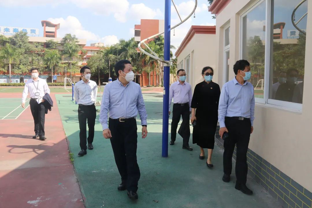 大平同志一行深入到学校(幼儿园)食堂及厨房、课室、运动场馆等,详细了解、检查防疫措施。学校严格落实重大突发公共卫生事件一级响应要求,成立疫情防控工作领导小组,1月24日起实行封闭管理;对全校进行全方位消毒,确保安全;全面排查全体师生和职工,对在疫情重点发生地的教职工和学生建立动态跟踪、日报制度并要求近期暂不返深,从非重点疫情发生地返深的教职工、家长、学生自行居家隔离14天;严格落实“停课不停学”要求,通过线上课堂开展教学,并根据实施情况及时调整教学方案和训练计划;设置独立隔离观察室,多渠道采购,储备了医用口罩、消毒粉、红外线温度检测仪、防护服等防疫物资,为学生返校做好了充分准备。
