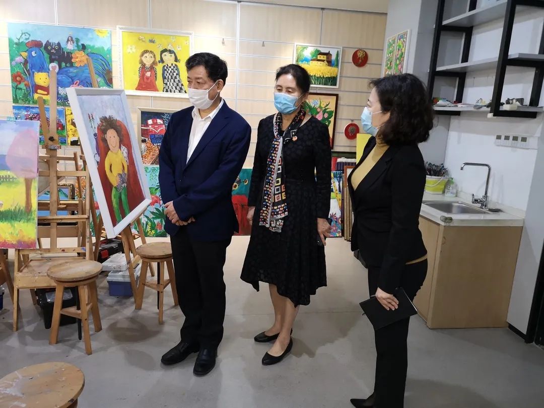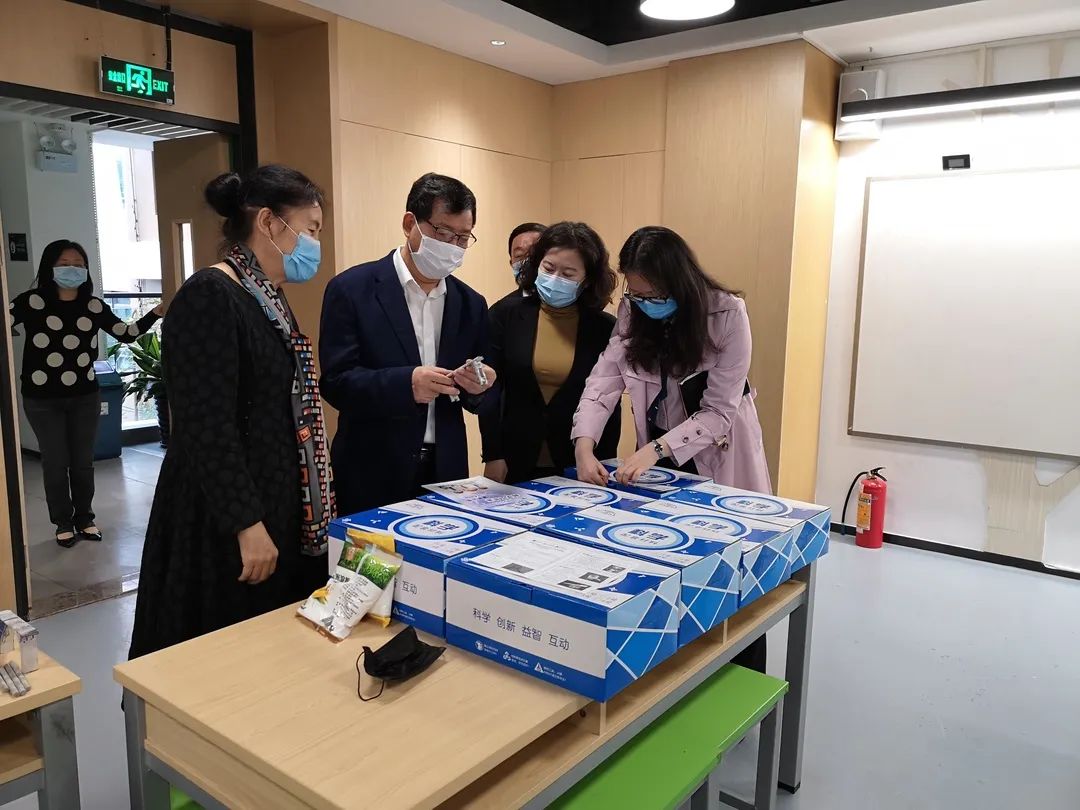 3月17日上午,大平同志一行走访深圳外国语小学,实地参观了课程中心大楼(STEAM中心)油画教室、版画教室、自然科学实验室、创客实验室等教学设施,了解学校教育教学安排及防疫物资储备、学生返校工作准备等情况,与市政协委员、深圳外国语小学校长汪娱同志及学校相关负责人进行了交流。汪娱委员介绍了学校防疫工作开展、组织学生开设“空中课堂”,以及为学生返校所作的相关准备工作情况。