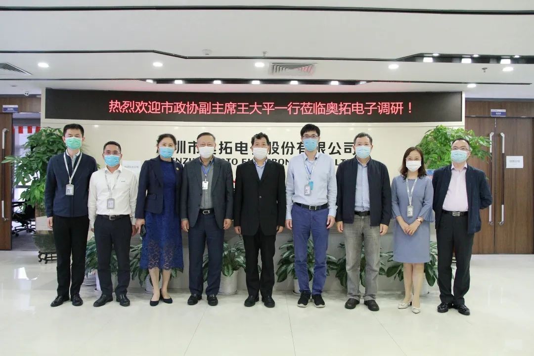 2020年3月19日下午,市政协副主席王大平同志到深圳市奥拓电子股份有限公司(下称“奥拓电子”)调研复工复产和新冠肺炎疫情背景下公司出口业务影响,并看望市政协委员、奥拓电子董事长吴涵渠。市政协副秘书长曹亚良、科教卫体委主任杜勤同志参加活动。