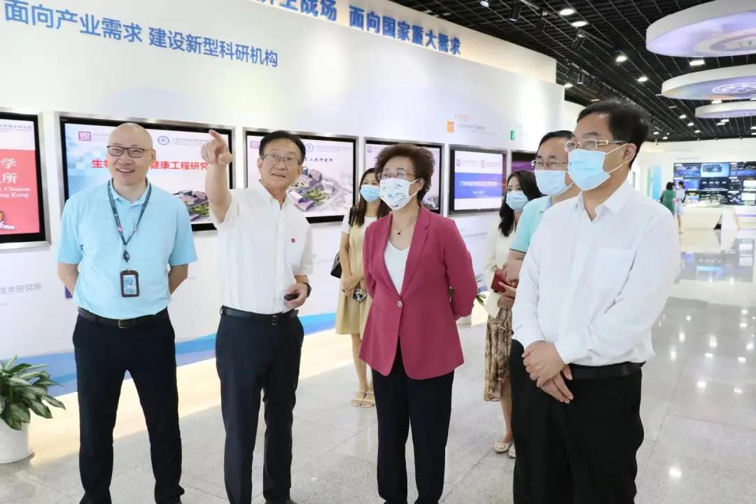 吴以环副主席一行在樊建平、成会明、刘陈立三名委员的陪同下了解了中科院深圳先进院的整体发展情况和六大创新实践经验,参观了深圳先进院碳中和技术研究所、合成生物研究所、生物医学与健康工程研究所、脑认知与脑疾病研究所、深港脑科学创新研究院,听取了相关领域最新成果汇报以及核心技术的研发与产业应用。