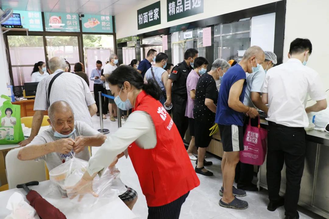 同日上午,在思康同志的带领下,科教卫体委分党组和工作处党支部全体党员为长者食堂试业开展志愿服务。全体党员分工有序,为前来用餐的长者提供秩序引导、协助点餐、安排座位、餐食打包、卫生清洁等暖心的用餐服务,提升了就餐效率,营造了舒适的用餐氛围。