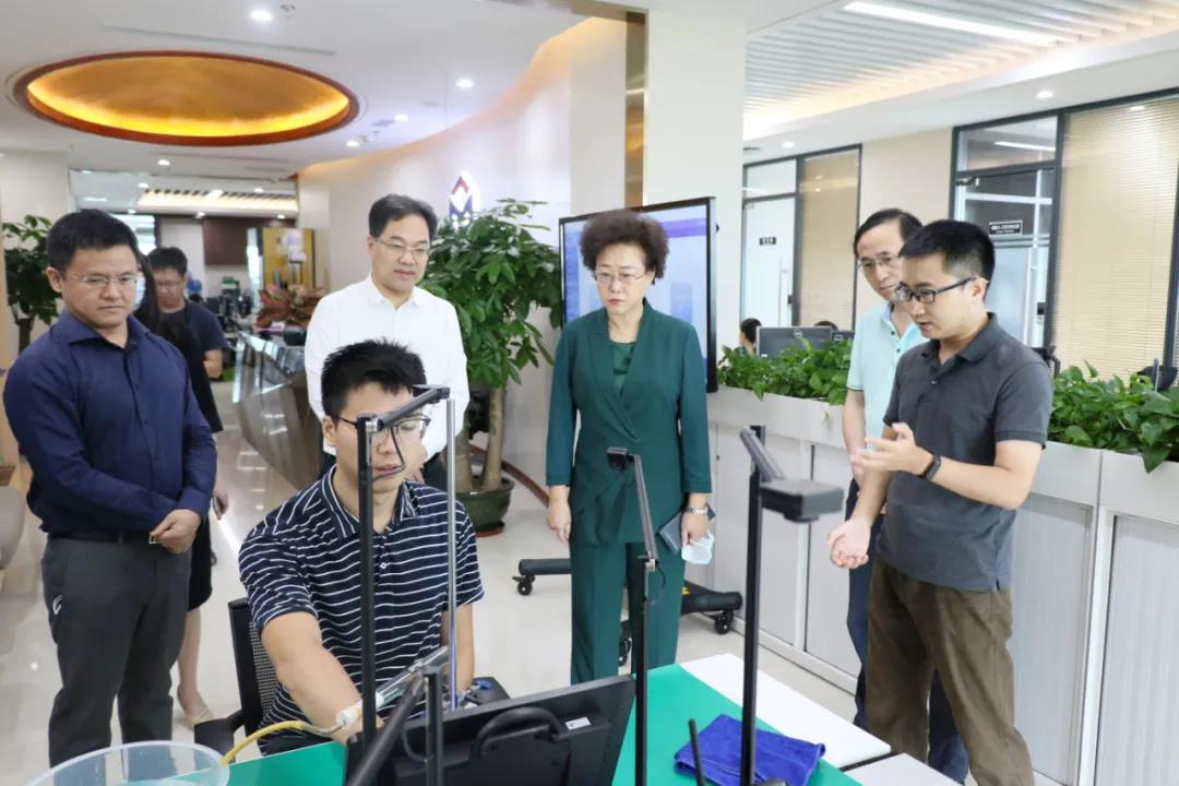 调研中吴以环一行参观了码隆科技公司展厅,听取了公司研发的5G+AI智能实验台产品介绍和人工智能技术在基础教育领域的应用情况。并观看了运用AI技术对化学实验操作进行智能评分的现场演示。