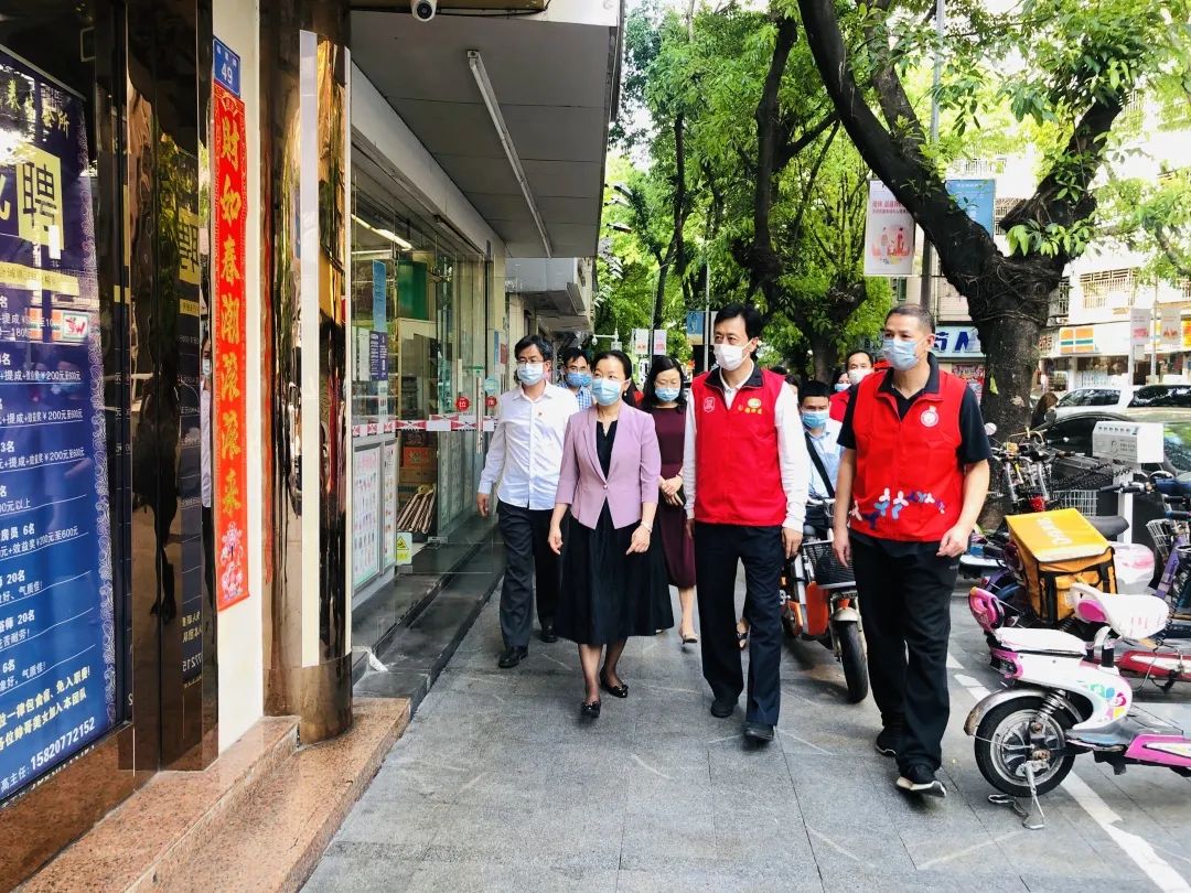 陈倩雯视察了福田街道办事大厅的工作情况,听取福田街道介绍“一馆一站两口岸,一地一圈五条村”情况,走访了圩镇、福田、福华社区,重点查验隔离点酒店、城中村卡口设置、三小企业复工营业等情况。