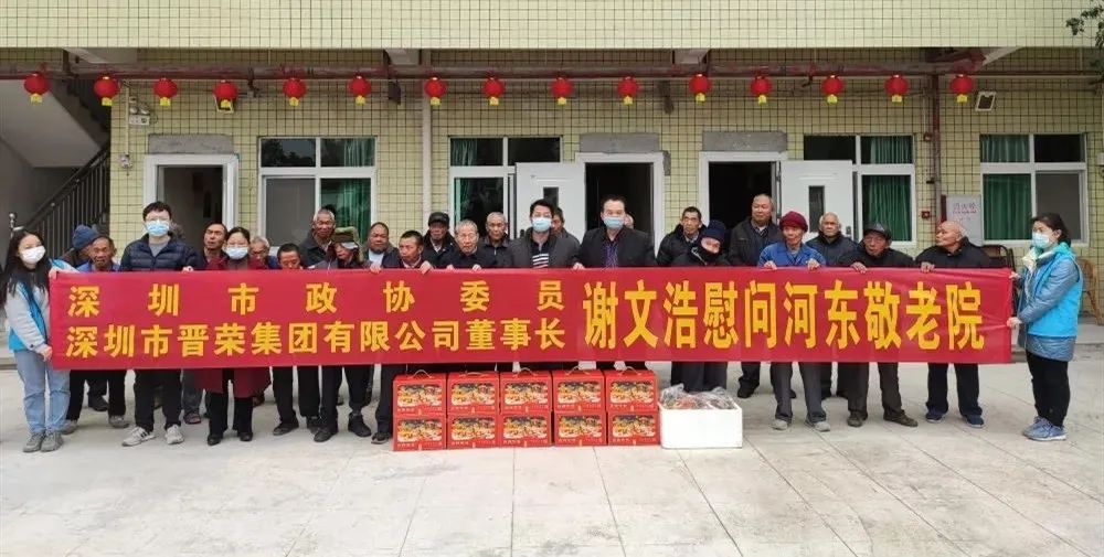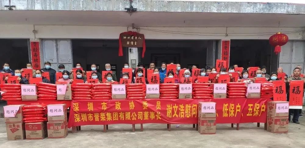 市政协特邀本市(三组)界别委员、深圳市晋荣集团有限公司董事长谢文浩,为梅州市五华县河东镇的低保户、五保户和敬老院赠送慰问金和大米、粮油等物资,为优秀学子发放奖学金,并个人出资为油田村约5公里路段安装路灯,方便村民出行。