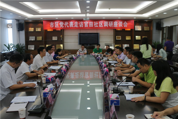 7月29日上午,市党代表、市政协副主席王璞到石岩街道官田社区走访调研座谈。区党代表、石岩街道党工委书记、办事处主任何奕飞等街道负责人陪同调研和座谈。