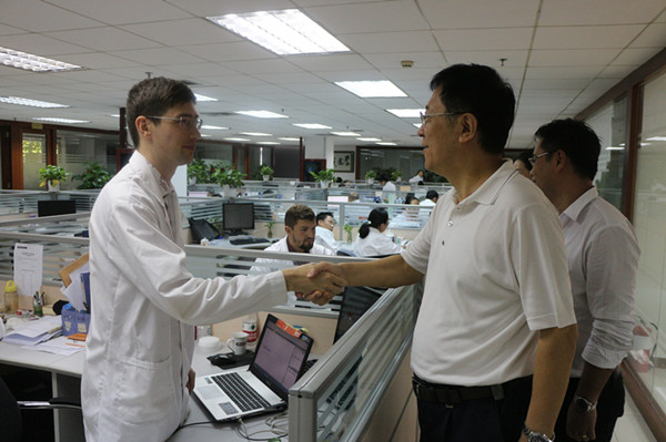 9月26日,市政协副主席王璞同志率队赴深圳易特科集团(前海安测)开展市领导挂点服务企业活动。参加活动的有市政协社法民宗委专职副主任曹秀梅同志以及市卫生计生委、市规划国土委、市人力资源和社会保障局、市企业注册局等有关部门负责同志。王璞副主席一行视察了安测O2O国际慢性病干预中心和生物IT基地,听取了集团总经理赵雪明女士、CTO葛新科博士、市场总监金龙先生、投资总监于飞先生等公司负责人关于O2O模式下的“互联网+健康+养老+医疗”的相关创新探索及易特科集团发展中遇到的困难和问题。