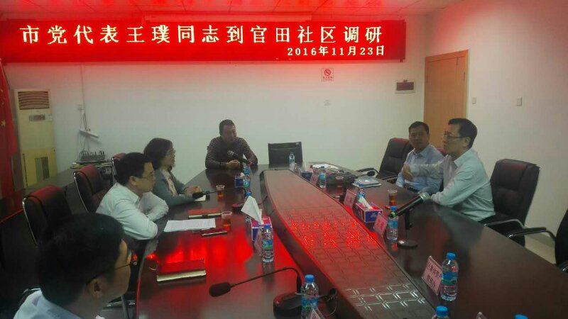 按市委组织部统一安排,11月23日,市党代表、市政协副主席王璞率队,到宝安区石岩街道官田社区开展 “党代表接待周”活动,市政协社法民宗委主任李振河、宝安区政协副主席文维及宝安区有关部门同志参加了活动。在官田社区工作站,王璞副主席与街道、社区负责同志以及群众、社区股份公司负责同志进行了座谈,详细了解了他们工作中存在的困难和问题。社区反映了股份公司股权改革、老屋统一管理旧改、学校占地补偿以及社区健身器材更新等问题,需要上级部门予以解决,王璞同志当场请石岩街道解决社区健身器材更新问题;同时表示将社区反映的问题以书面形式向市委反映。王璞同志表示,将严格按照市委要求,深入基层,倾听民意,反映民声,切实为基层群众解决实际问题,同时学习宣传贯彻好党的十八届六中全会精神。