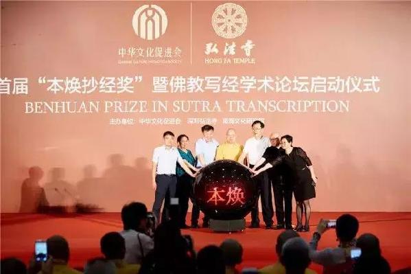2018年7月5日上午,首届“本焕抄经奖”暨佛教写经学术论坛启动仪式在深圳弘法寺举行。中华文化促进会主席王石,深圳市人大常委会副主任刘恩,深圳市政协副主席王璞,中国佛教协会副会长、海南省佛教协会会长、弘法寺方丈印顺大和尚等领导嘉宾出席了启动仪式,并分别致辞。