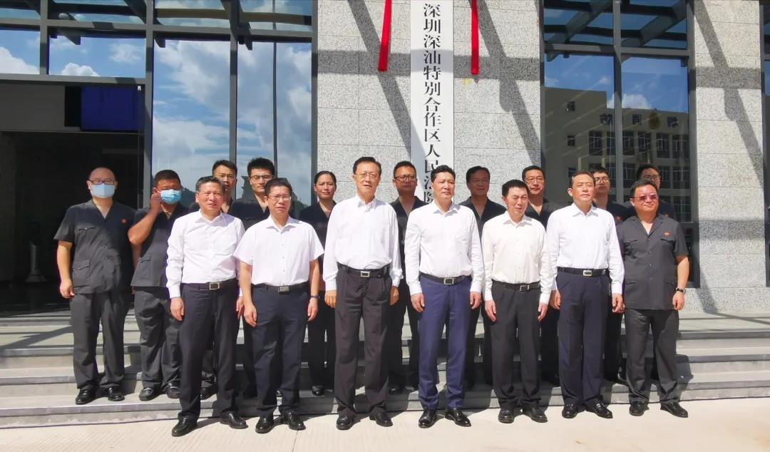 8月31日上午,市政协党组成员、副主席王璞出席全国首个飞地法院——广东省深圳深汕特别合作区人民法院揭牌仪式,出席揭牌仪式的省市领导还有:广东省高级人民法院党组书记、院长龚稼立,广东省高级人民法院党组成员、政治部主任苏茂荣,深圳市委常委、市委政法委书记余新国,深圳市人大常委会党组成员、副主任贺海涛,深圳市中级人民法院院长万国营,深汕特别合作区党工委书记产耀东等。