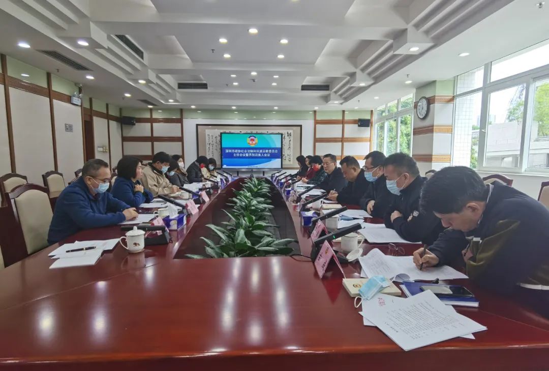 社会法制和民族宗教委主任廖远飞主持会议并传达了市政协党组2022年工作要点,机关二级巡视员曹秀梅就专委会2022年度重点工作作说明。王雪、尹葵、孔丽、古成、吴定海副主任及陈锦华、曾昭霞、易玉琨、房涛等界别召集人,就落实市政协党组和专委会年度重点工作以及界别工作计划,提出了意见建议。