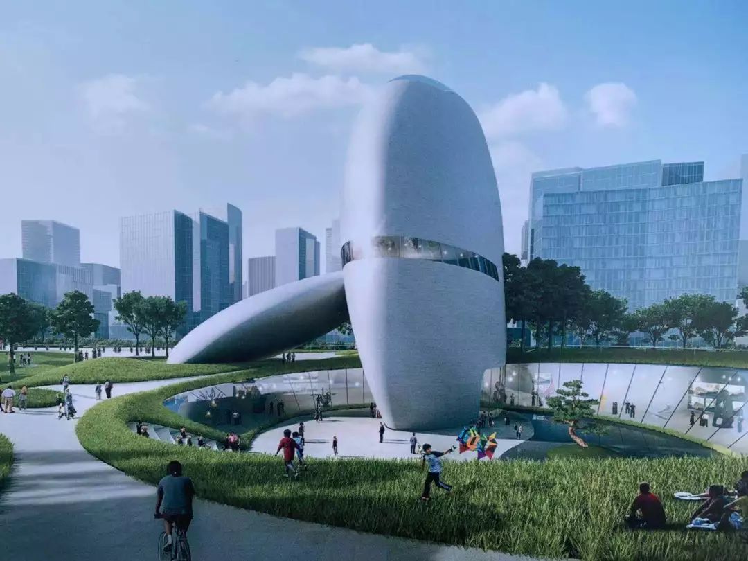 视察组一行在市文化广电旅游体育局等领导的陪同下,首先来到南山区登良路与逸湖四街交汇口,实地考察深圳创意设计馆的选址,随后前往位于圳湾1号71楼的云颂音乐厅,从高空考察了深圳歌剧院和深圳创意设计馆的选址。据介绍,位于东角头的深圳歌剧院将打造成大湾区最高标准艺术殿堂;选址后海滨湖带的深圳创意设计馆,将设计一座独具匠心的“原石状”特殊空间展厅。(图:深圳创意设计馆效果图)
