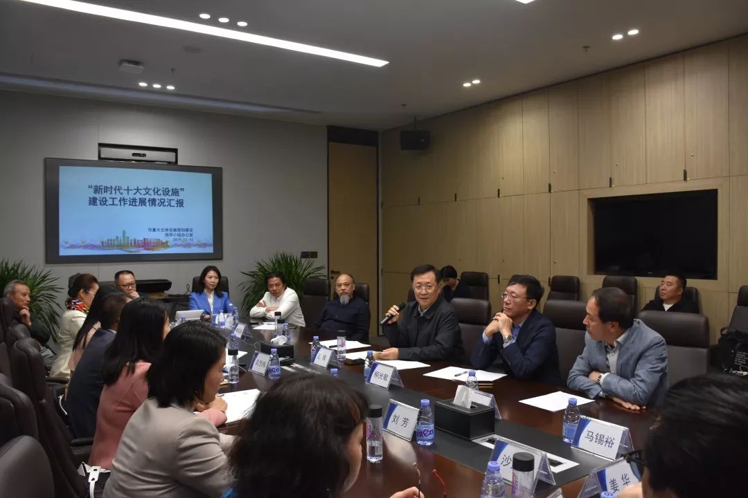 实地视察后,视察组一行听取了市文化广电旅游体育局副局长吴志伟关于我市“新时代十大文化设施”建设工作进展情况的汇报并召开座谈会。汇报内容包括组织保障、规划布局、项目进展阶段等内容。据悉,“新时代十大文化设施”包括深圳歌剧院、深圳改革开放展览馆、深圳创意设计馆、中国国家博物馆·深圳馆、深圳科学技术馆、深圳海洋博物馆、深圳自然博物馆、深圳美术馆新馆、深圳创新创意设计学院、深圳音乐学院。这些项目选址布局相对集中、均衡布局。项目进展方面,中国国家博物馆·深圳馆、深圳海洋博物馆、深圳创意设计馆、深圳创新创意设计学院、深圳音乐学院已进入前期论证阶段,深圳歌剧院、深圳改革开放展览馆、深圳自然博物馆处在可行性研究阶段,深圳美术馆新馆预计年底前开工,深圳科学技术馆进入开工准备阶段,建筑设计方案已确立。以上项目的土地供应情况也在按部就班进行推进。