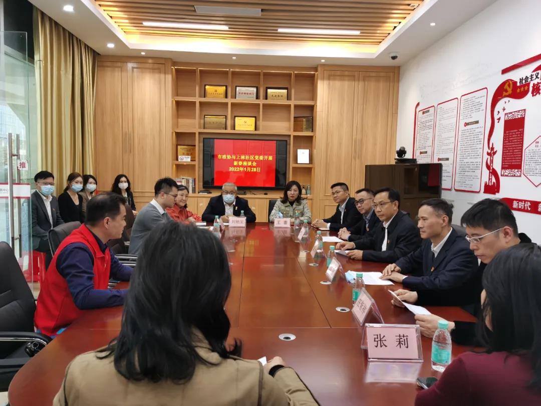 随后与上林社区党委召开新春座谈会,上林社区党委书记杨逸奎同志介绍深圳“0107”疫情发生以来社区的疫情防控工作情况及社区工作者、志愿者饱满的工作状态。庄紫祥、林华明同志表示,感谢有机会为社区工作做些贡献,接下来尽最大努力尽责履职,造福社会。