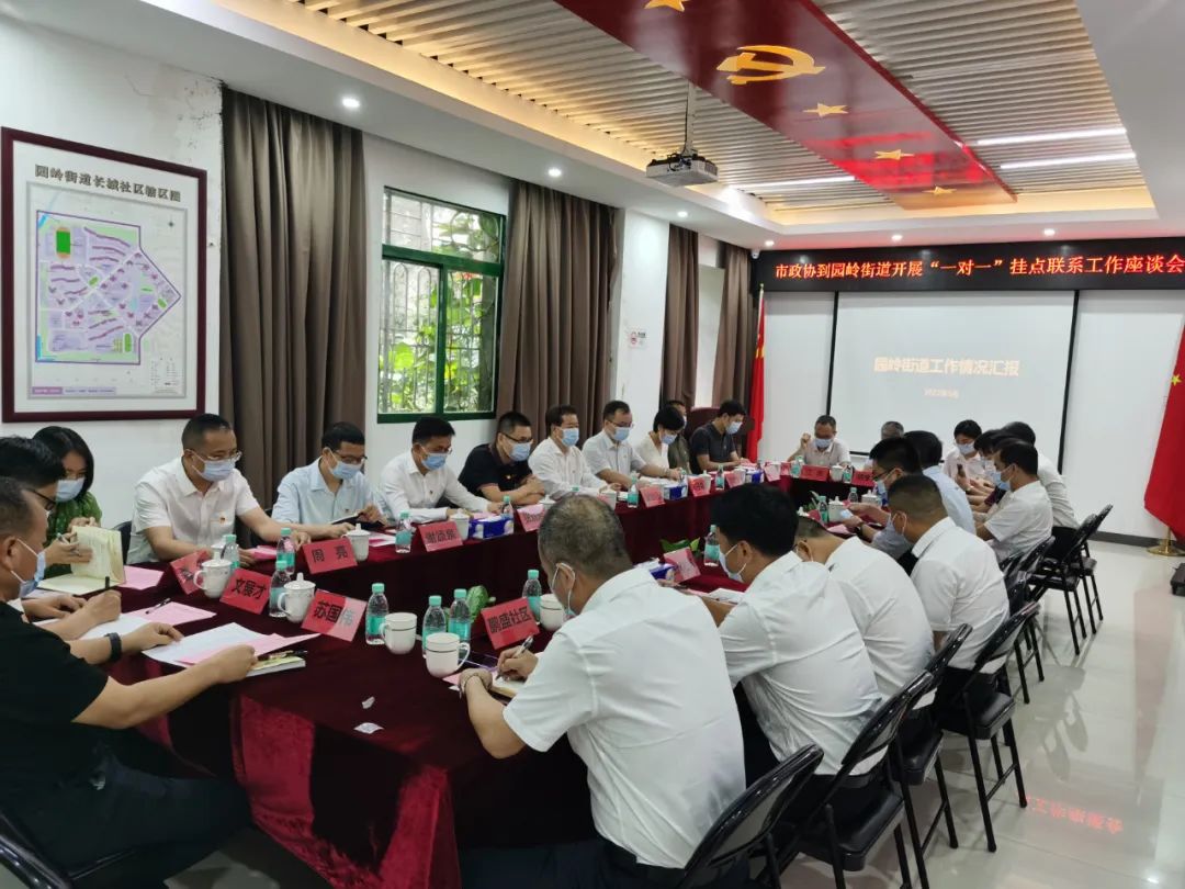 梁增昌一行先后听取了街道办事处关于园岭街街道辖区人口、产业特色、重点工作以及未来发展谋划等情况介绍,并就如何结合街道社区实际扎实开展挂点联系进行深入交流研讨。