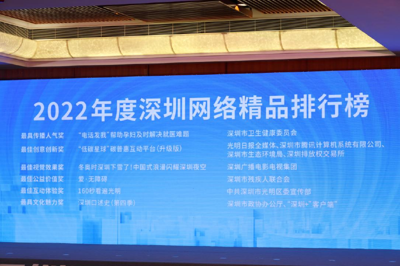 深圳网络精品排行榜是深圳最具影响力和权威性的新媒体年度活动,由深圳市委网信办主办,深圳市互联网行业联合会承办,以“好故事”赢得共鸣,用“正能量”凝聚共识,以正能量传递时代之声,用主旋律诠释活力深圳。2022年是活动开展的第二年,共有90家单位参与,845件作品参评,网络投票数超400万次,通过推荐征集、初评筛选、网络投票、产品复评、专家终评以及社会公示等环节,最终评议出五大类单项“十佳”优秀作品、六大综合奖共计54件获奖作品。
