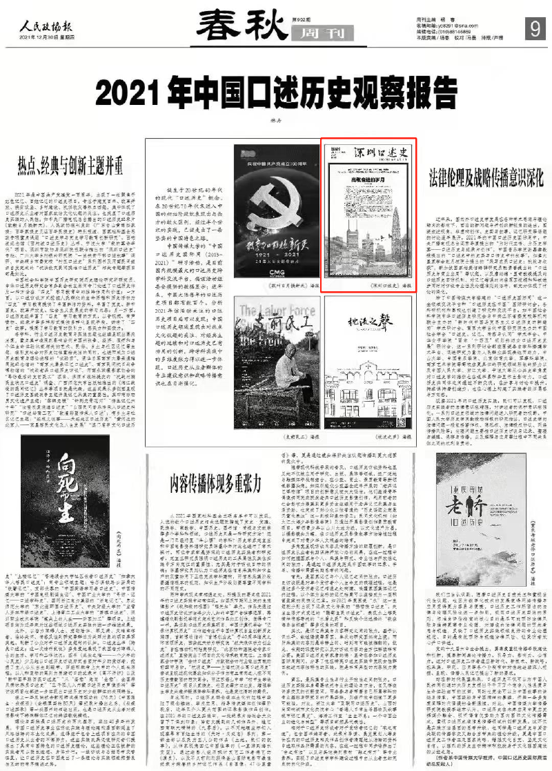 此外,第四季《深圳口述史》百期连载专栏还得到新闻业界和学术界的认可,荣获2021年中国口述历史国际周“年度口述史项目”大奖。