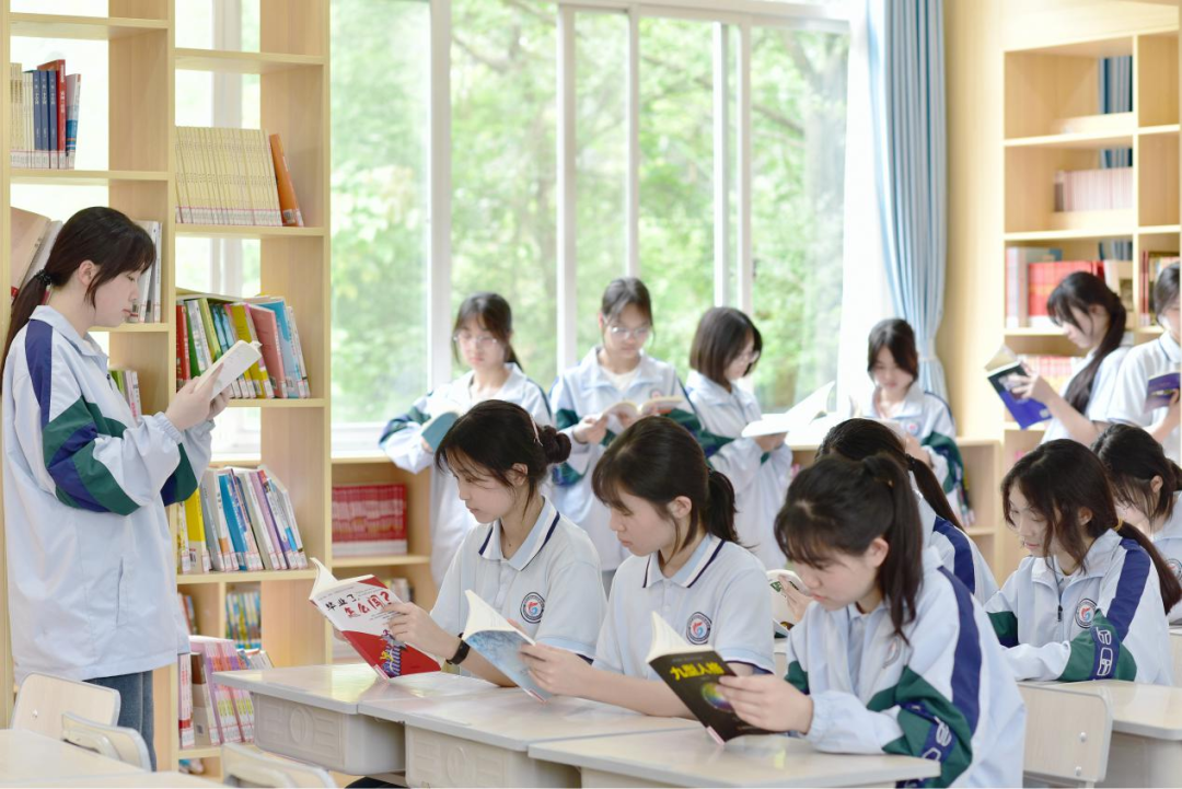 罗城高级中学图书馆内学生阅览龙华政协委员慈善基金所赠图书。