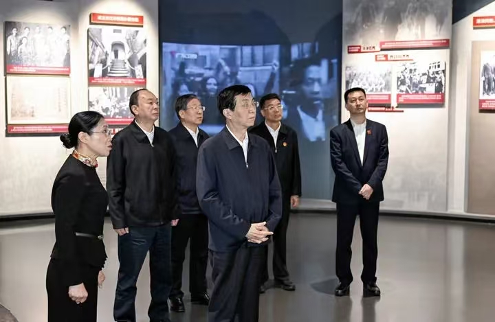 11月21日至23日,中共中央政治局常委、全国政协主席王沪宁在广东深圳、惠州调研。这是11月23日,王沪宁在惠州参观东江纵队纪念馆。新华社记者 殷博古 摄