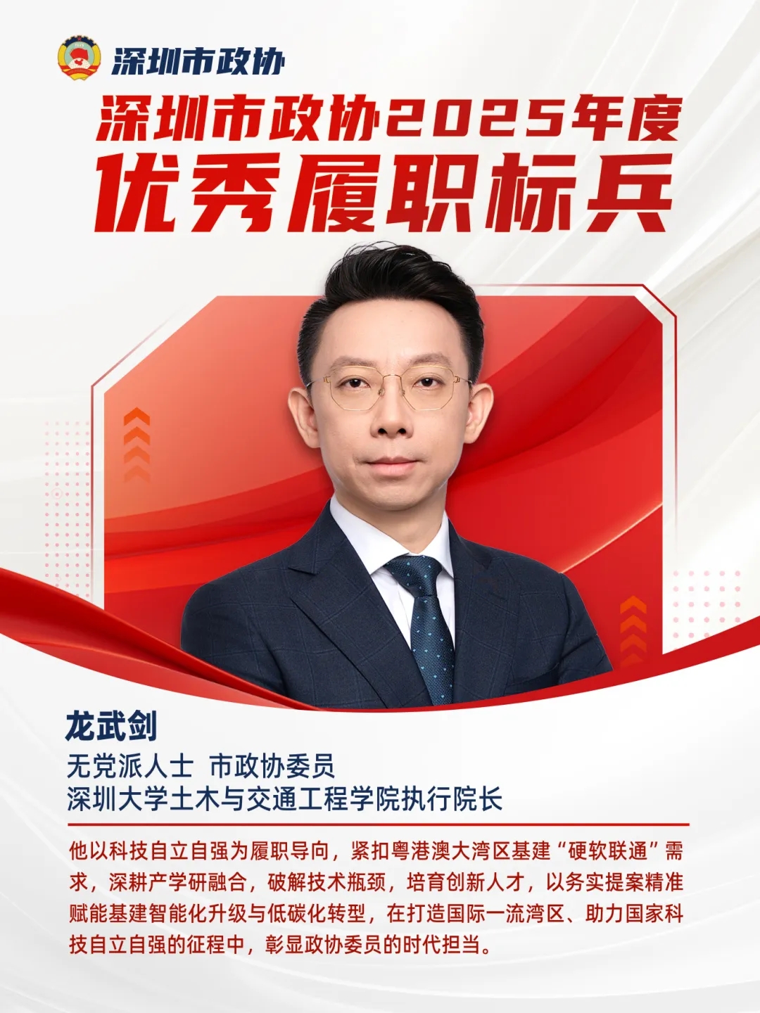 龙武剑,无党派人士,市政协委员,深圳大学土木与交通工程学院执行院长。