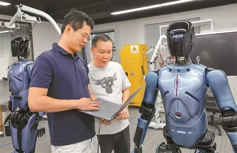 当前,深圳人工智能飞速发展,融入市民生活、赋能产业升级。图为南山区一家科技公司内,研发团队正加紧调试机器人产品,为产品迭代与场景化落地做准备。深圳特区报记者 周红声 摄