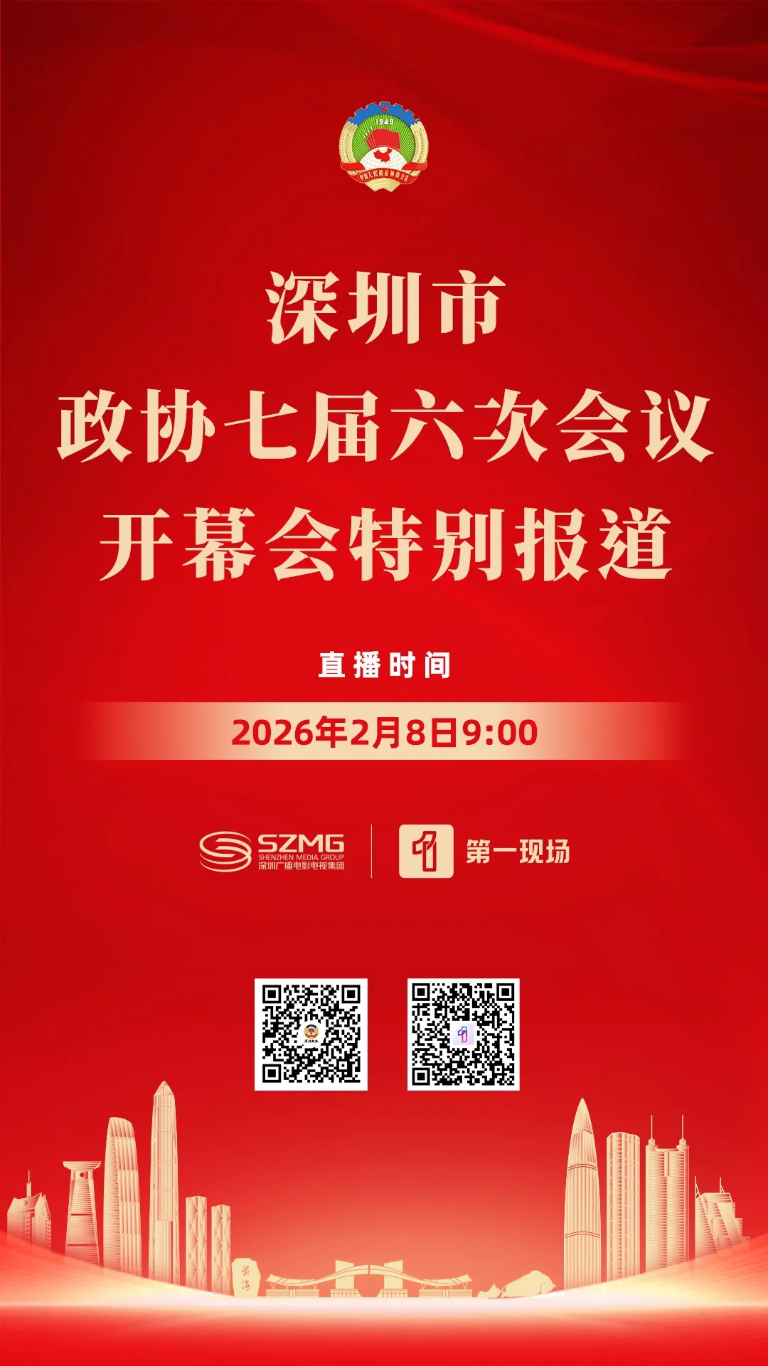 直播预告|深圳卫视、深圳政协视频号2月8日上午直播市政协七届六次会议开幕会