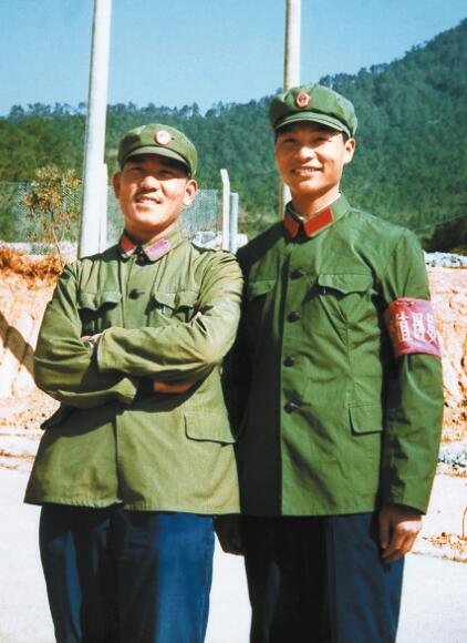 1983年,欧阳祥山(右)在布心二线巡逻与同事合影。
