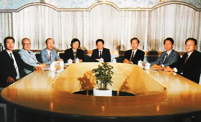 1990年,深圳发展银行领导班子合影(右三为刘自强)。