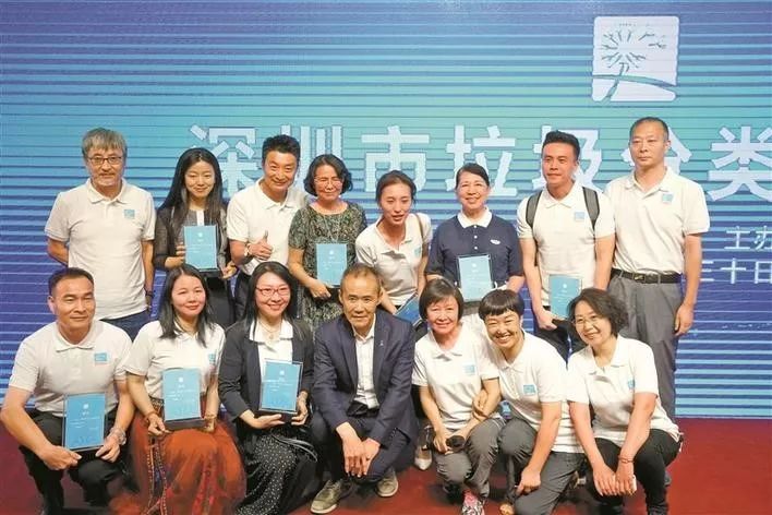 ▲2018年9月1日许楷楠(前排右二)在深圳市垃圾分类大使聘任仪式上。